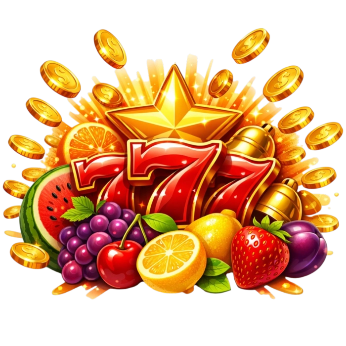 - • Theme: classic fruits, BAR icons, and retro slot style